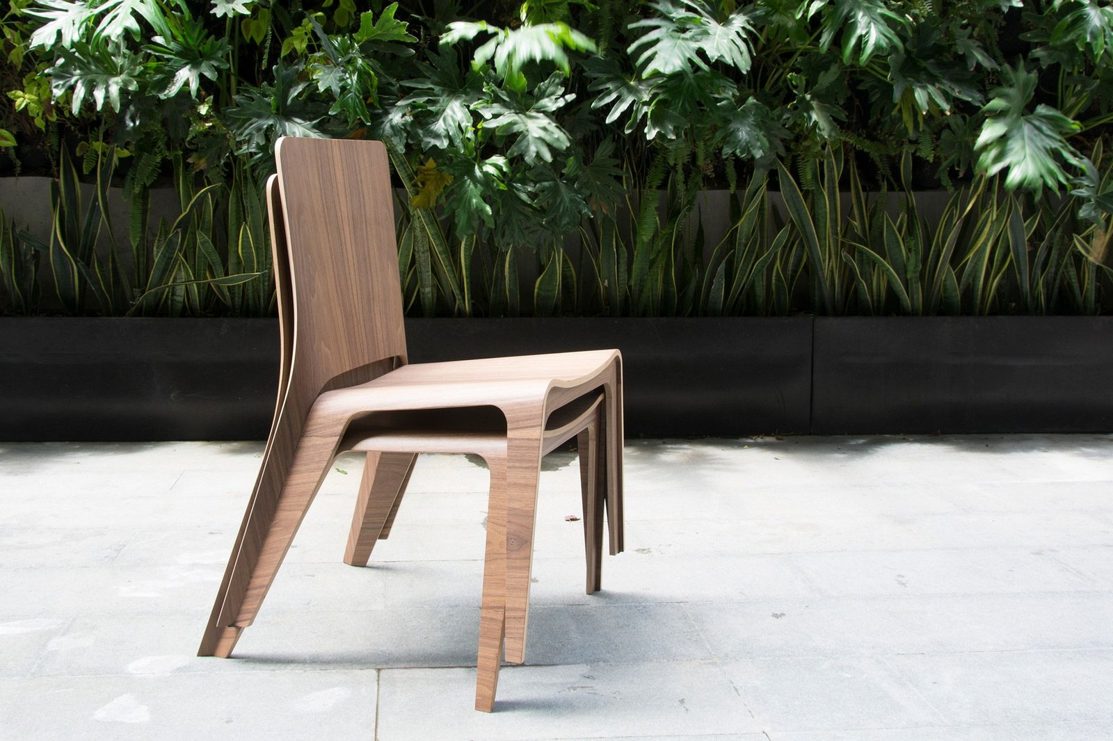 The Aria chair is a statement that force does not come from materiality but from technique. The chair is made out of 2 parts that are bent by pressing molds in an angular shape and then joined together by a unique system that creates a strong bond between the parts, this creates a really lightweight chair that it is also stackable because of its angular design.